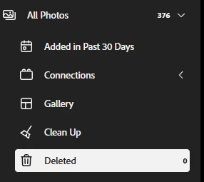 I then tried to add the full quality images to the cloud by importing via the regular Lr program but unfortunately that took me over my storage limit, so I first cleared the deleted items on Lr to see if that woud help (it didn't). I then went back to Lr Classic, removed all the 385 images from All Synced Photographs, and started again to sync them as smart previews only.