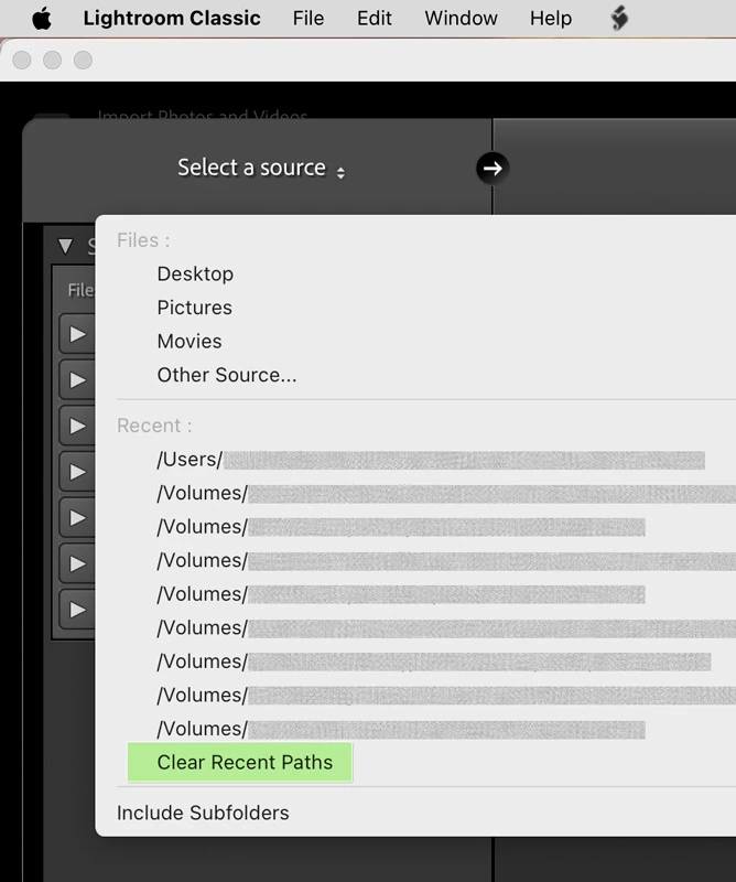 Lightroom Classic is constantly "forgetting" where I usually import files from (my download folder on my Mac) and where I usually put them (a Misc folder in my library).