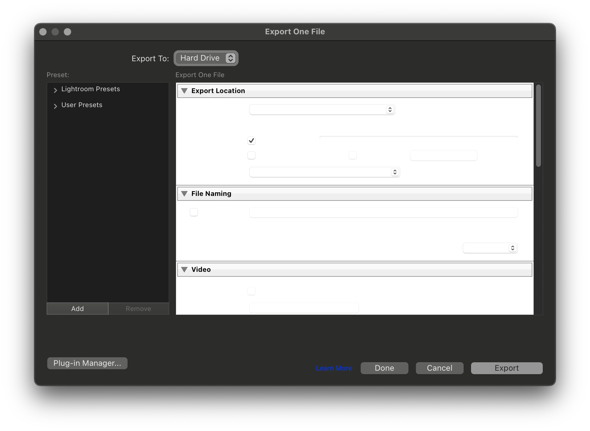 After installing Lightroom 13.3, my export dialog box is all white in the middle and no text is visible (see screenshot). Has anyone else experienced this? Once I installed the update, the "what's new" pop up was light grey with white text and barely readable also.