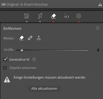 What’s weird is that a red dot appears on the Healing tool with a note saying, “Some settings need to be updated.” I can click to update, but the whole thing is really frustrating because it means I have to redo everything. And it happens again every time I switch images.