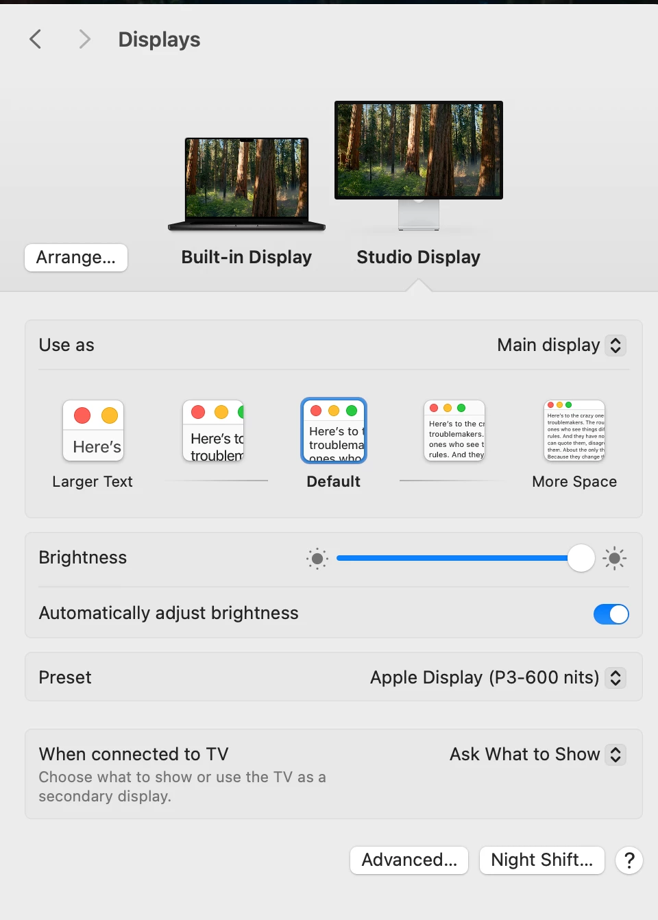 My setup includes a MacBook Pro 16" (2023) running macOS Sequoia 15.6 and an Apple Studio Display.