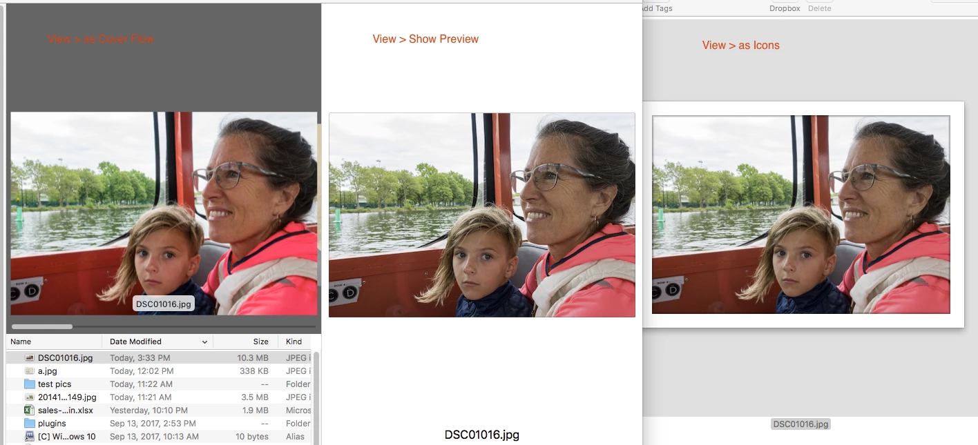 Also, if we right click the oversaturated photo in Finder and select 'more info' the photo is shown in Preview and the colours are correct.
