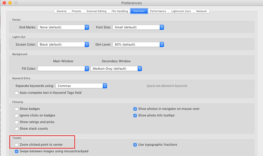 But I believe your problem is not with that at all. If I zoom into any part of an image and then select a different image in the Film Strip, without first Zooming out (FIT view), the next image is zoomed into that same area. I think this is by design.