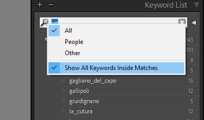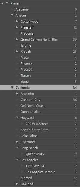 When editing (organizing) the keyword hierarchy, it was much more convenient when it showed the full hierarchy of places subordinate to California (in this example) in the Keyword list query result. What happened? Is there another setting that needs to be set? Or is that a functional change (bug) in a revision of the program somewhere along the path of program updates?