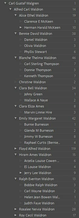 I use keyword hierarchies extensively in my historical extended families photos project. See examples in attachments 1 and 2.