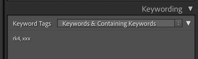 Not behind my computer but Keywords & containing keywords is what I was referring to. That will show all keywords including their hierarchical structure. "will export" will not show synonyms that are set to never export so will not give you everything but might work in your case if you have not set any keywords to never export. Enter keywords only shows the keywords that you directly typed. It does not show synonyms and parental keywords for keywords in a hierarchy that are unique. For example if you had a keyword entered that said "Crater Lake < Oregon < USA" it would only list "Crater Lake" in the box but the image would still be found if you search for keywords containing USA. It would show the entire hierarchy only if you have multiple keywords called crater lake, for example if you also had one called "Crater Lake < Colorado < USA".