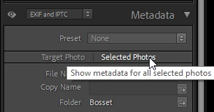 Also, when you're editing the metadata, can you double-check that "Selected Photos" is chosen instead of "Target Photo"?