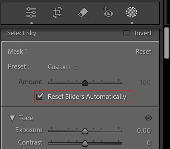 Quand j'utilise les masques, les valeurs des curseurs ne sont pas à zéro.