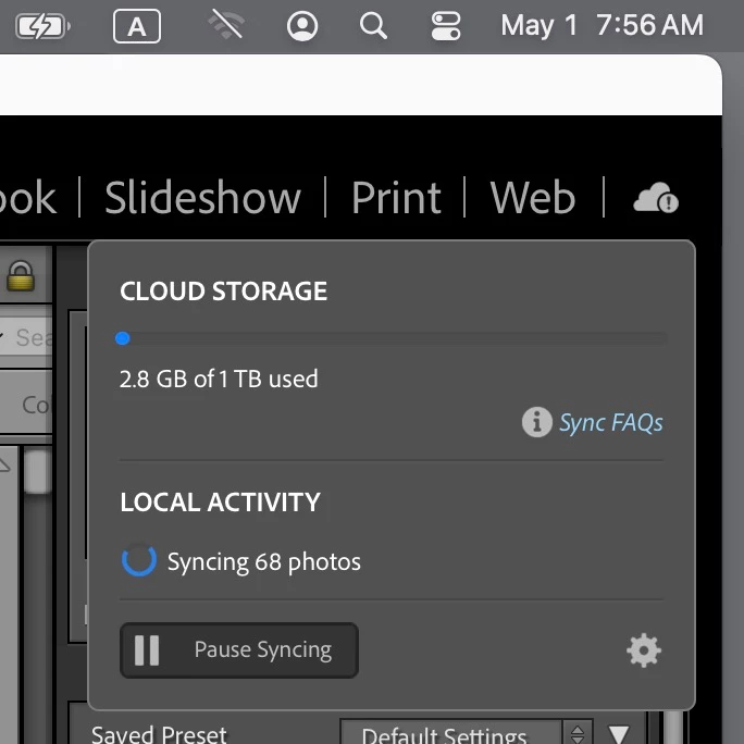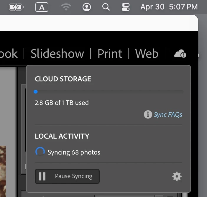 2). If Libraries are "not currently synching", the why does it show that they are when I look in the Lightroom Classic interface?