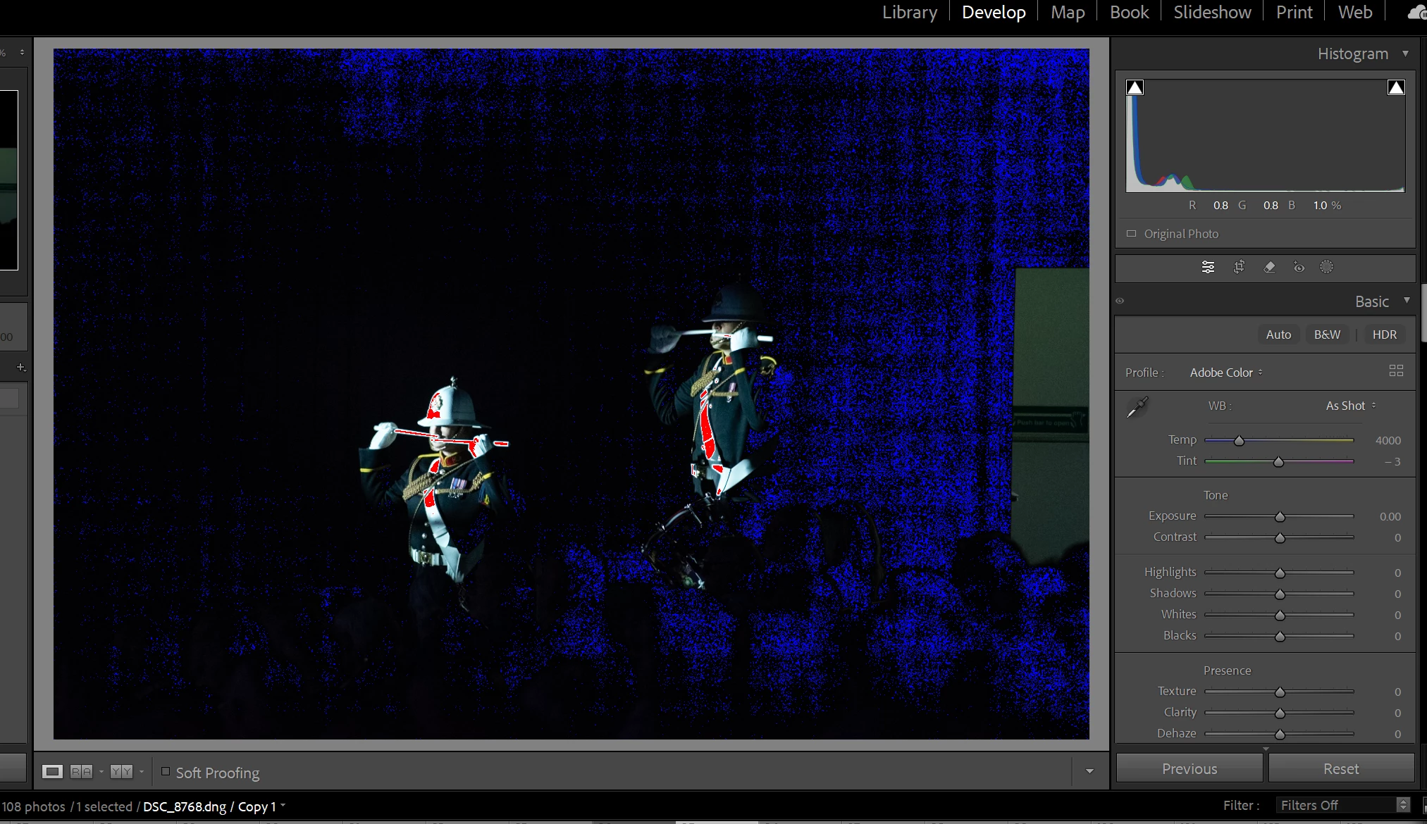 when I move library image to Developer the dark areas turn a grainy blue and whites turnout red. Screenshots below. This is not a small change and cannot be edited out. I saw an old post about this and have checked my monitor settings as advised and set to sRGB IEC6 1966-2.1 I am new to LRc and now totally stuck and cannot edit any image so any assitance is appreciated. Thanks