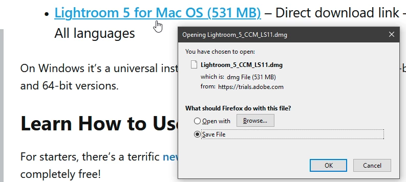 Lien de téléchargement Lightroom 5.7.1 mise à jour.