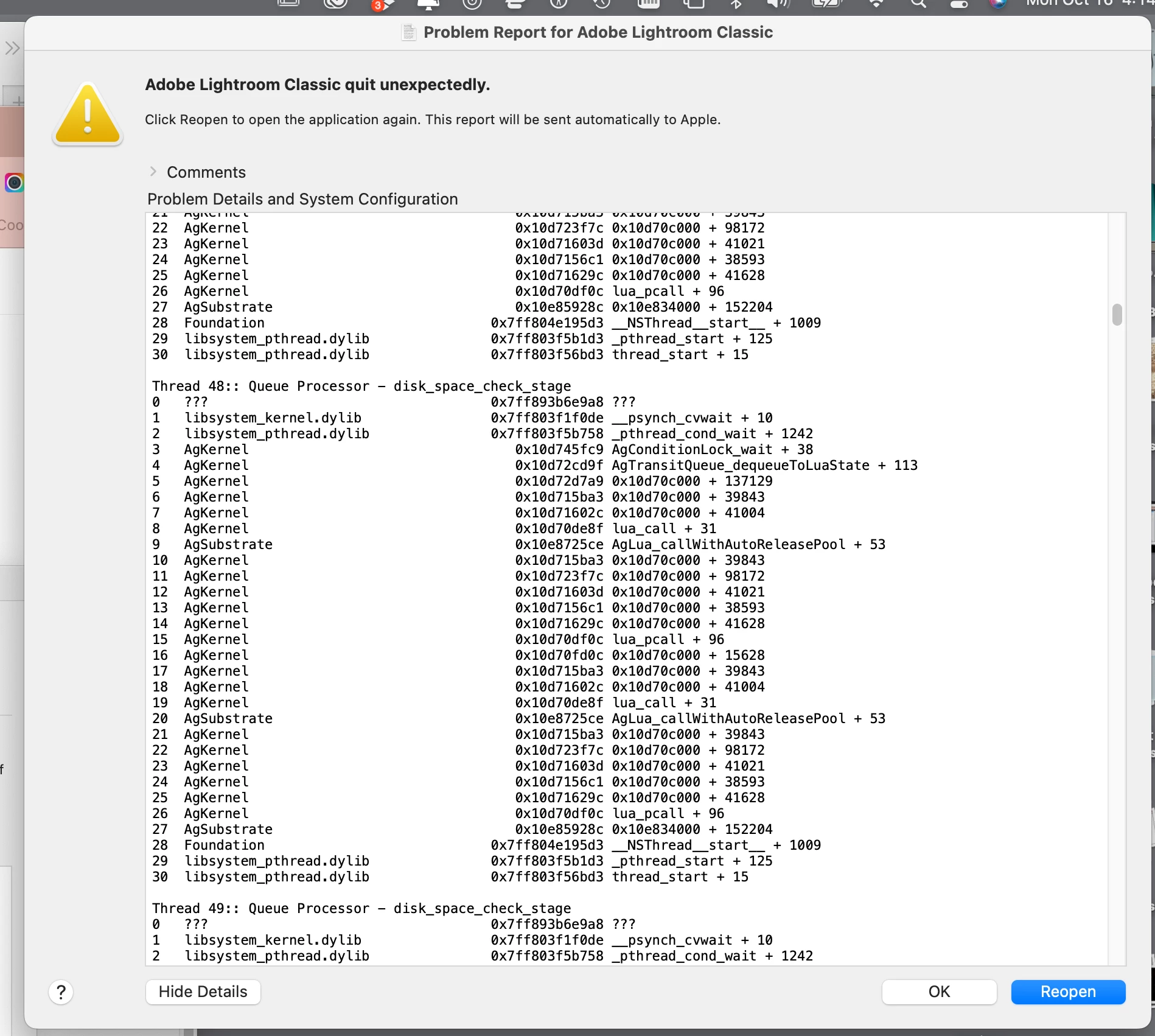 Was the crash dialog Adobe’s? Apple’s?