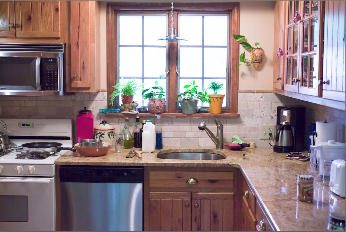 Double-Click on image to see full size. The application of NR is most obvious in the wood doors below the sink and stainless steel door to the left.