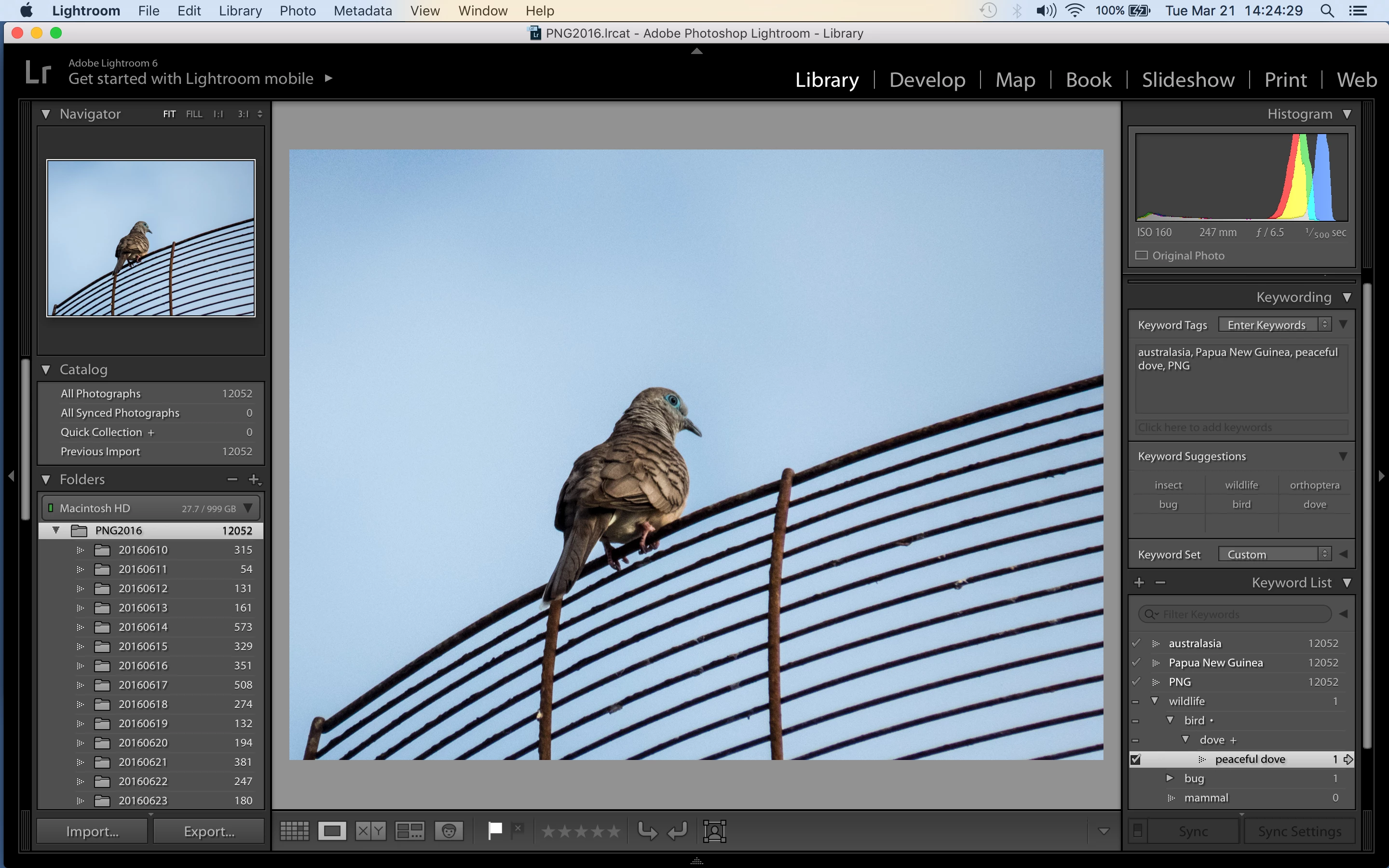 My computer is a Macbook Pro running OS X El Capitan version 10.11.6 (15G1217). I am using standalone Lightroom 6 version 6.9 with Camera RAW 9.9.