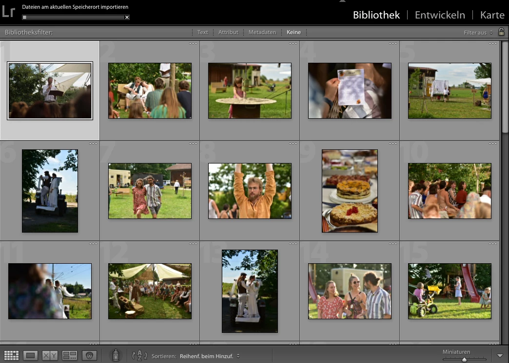 - when cancelling the import adn restarting it with the missing photos it would continuously upload a bunch of phots and then freeze again. Weirdly it would always be in mulitples of 25 (so 25, 50, 75, 100,... photos). After doing this for a while hoping that this way I would at least be able to import all photos at some point, this "work around" also stopped working and no photos are being added at all. Importing bar does not move.