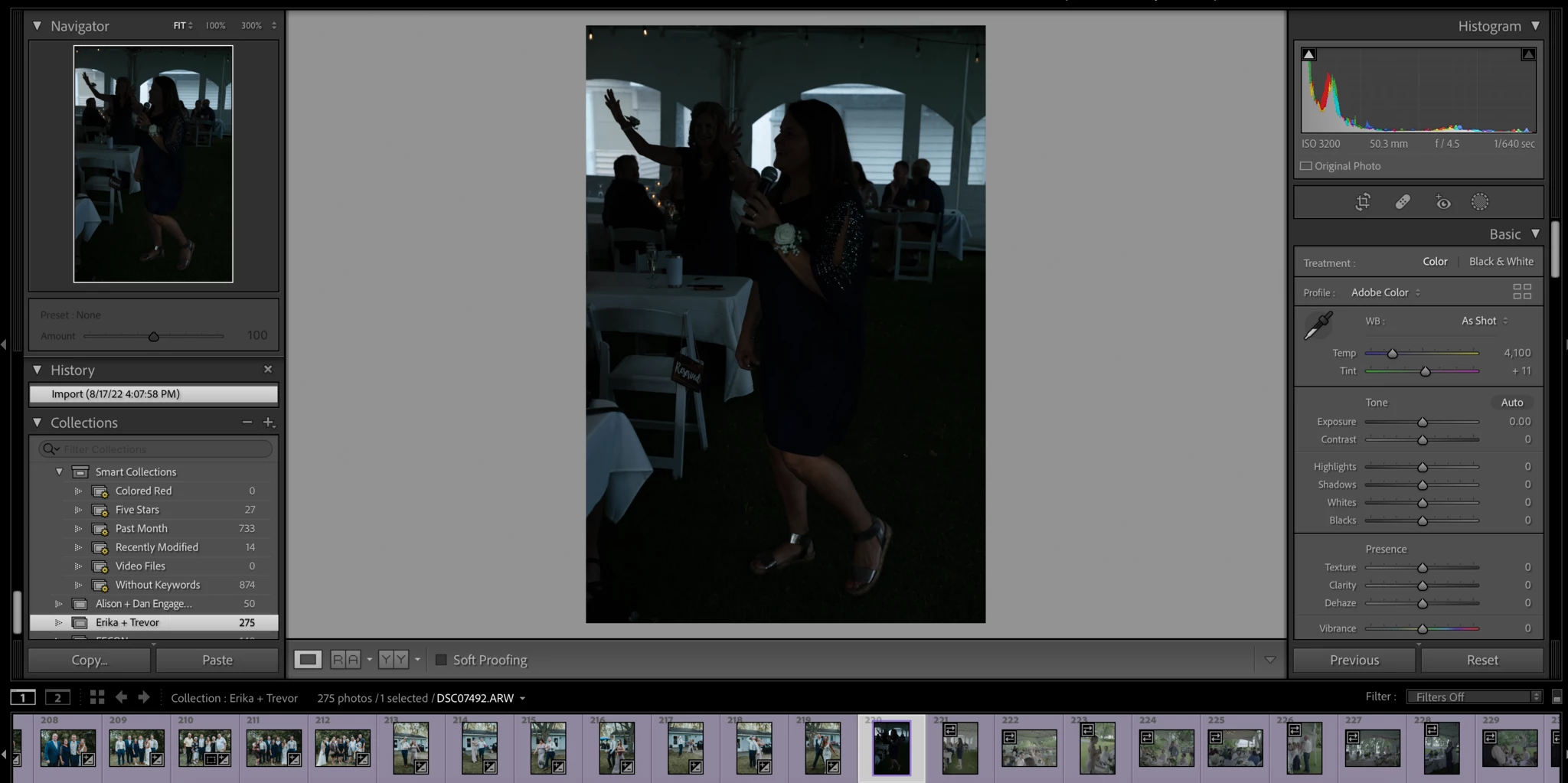 I've been noticing this for awhile lately -- maybe user error or camera setting I need to change?? -- but my photos look WAY different in Lightroom vs. on my camera readout. I shoot Sony a7Sii and every time I upload to LRC, the photos look over saturated, under exposed, and super shadowed and dark. It impacts editing because of how much I need to tweak settings before even using presets. The images show up in the correct lighting in the little filmstrip (see photo, selected image is dark, images to the right of selected image in strip are correct coloring) but once I click on them in develop mode, the images darken significantly. Help?! Lightroom is updated to the most recent version, 11.5, and I'm working on a MacBook Pro. I noticed this problem probably two months ago -- it hasn't always been happening and I didn't change anything that I know of between when it wasn't happening and when it started.