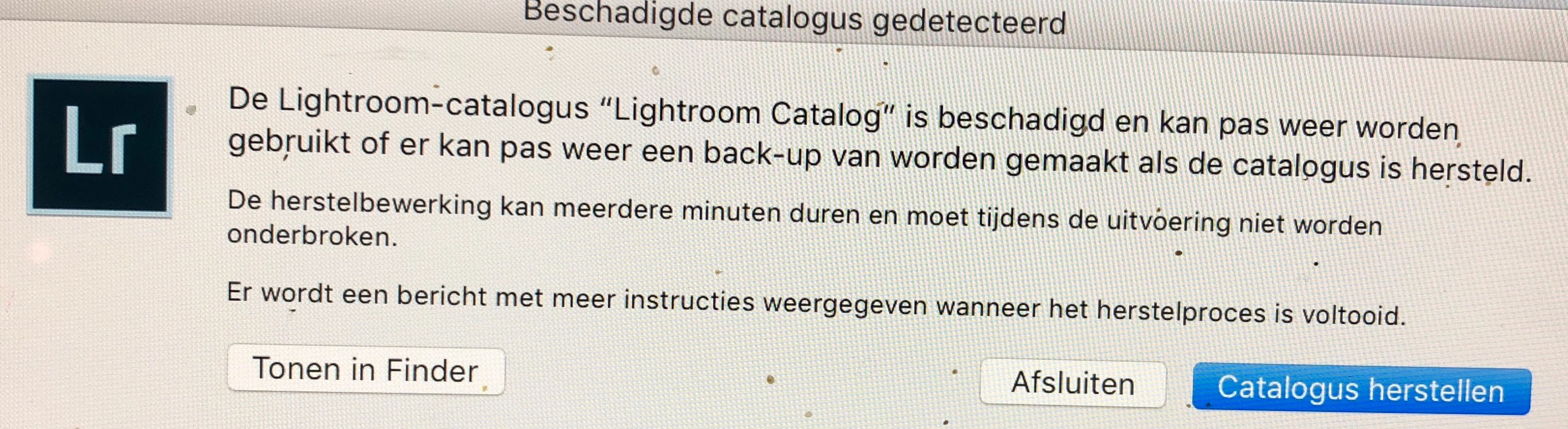 Lightroom catalog recovery