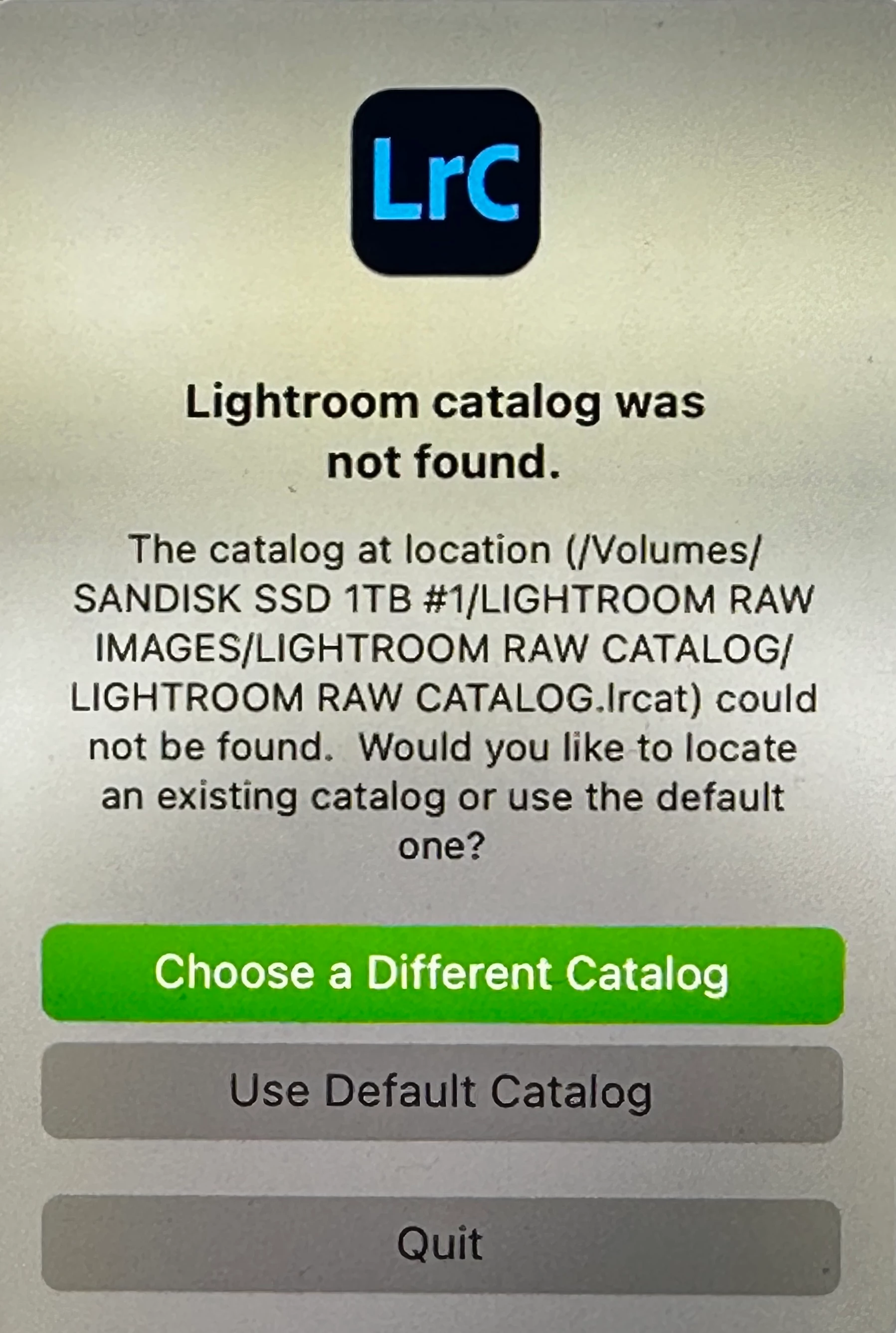 Lightroom catalog was not found