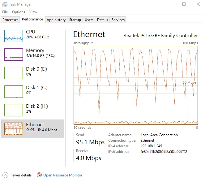 During my investigation, I found that I have unusually high network traffic while Lightroom is importing photos.  As you can see from the image below the traffic peaks for every image imported.  Does Lightroom send everyone of my photos to the cloud as it imports it???  Is this a default?  Because I haven't changed any settings.  As you can also see, disk 2 (H:) is where I am importing the photos to, and the traffic there is almost zero!
