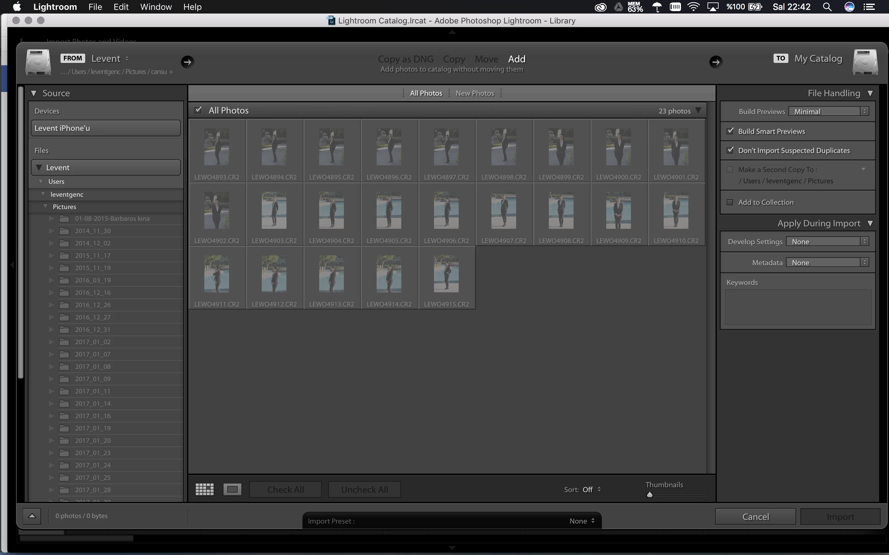 Lightroom CC won't import images