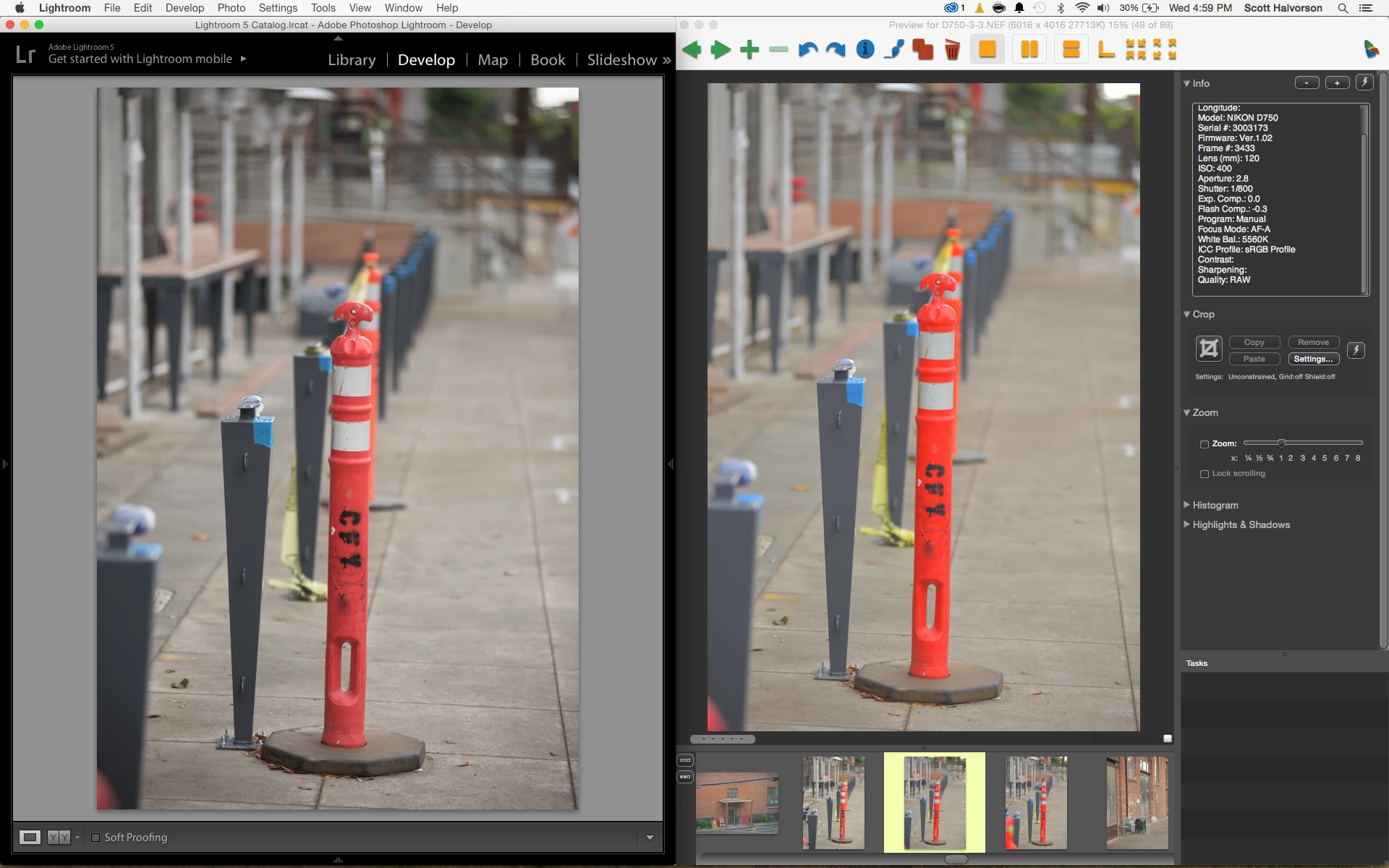 Photo Mechanic and Lightroom to compare two RAW images. Based on what you