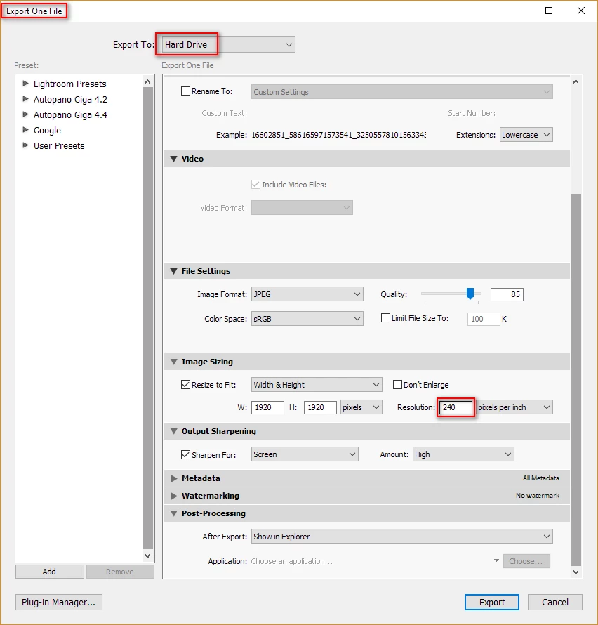 Lightroom changes the resolution of pictures automatically from 300 to 240