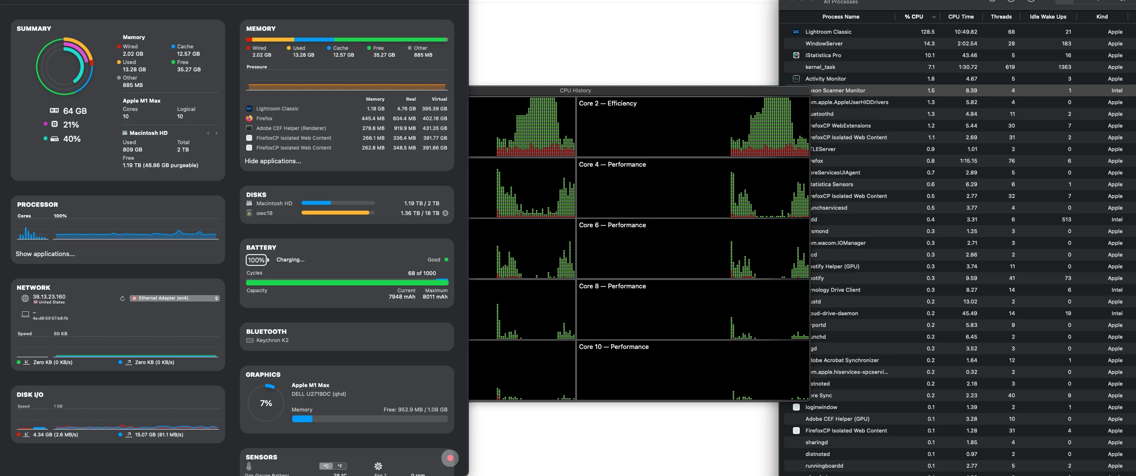 I have a MacBook M1 Max with 64 GB RAM and yesterday I installed the new version, that is 14.5. The export is incredibly slow. I do not know why. Exporting 3000 JPEGs suddenly takes hours. This started all of a sudden a few days ago with version 14.4 and has not improved with 14.5. I am a professional photographer and depend on LR...