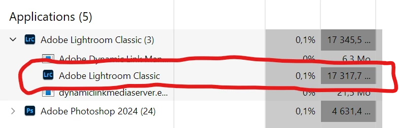 Lightroom classic 13 use all my ram and then never go down