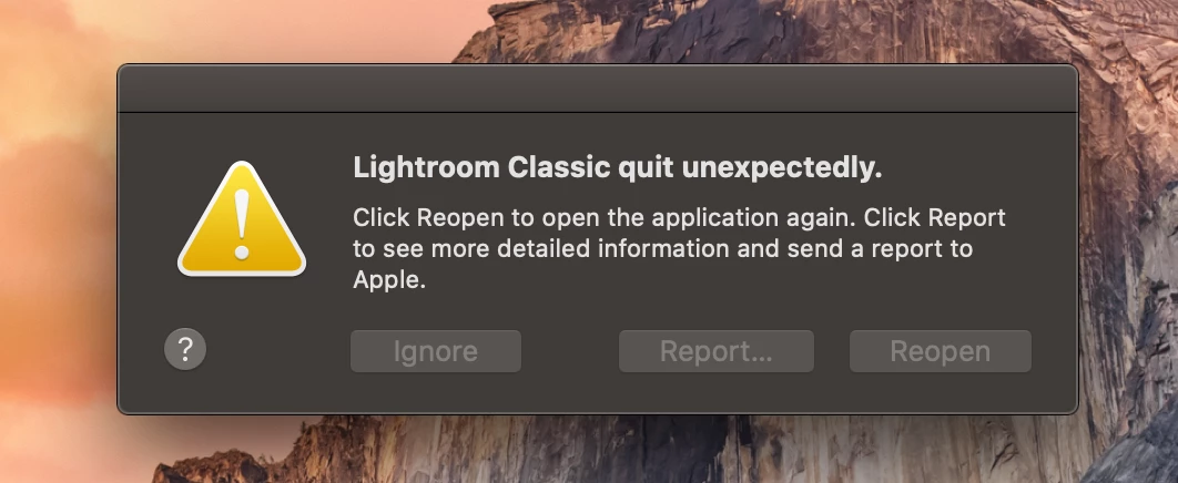 Lightroom Classic CC 2020 Crashes! Macbook Pro