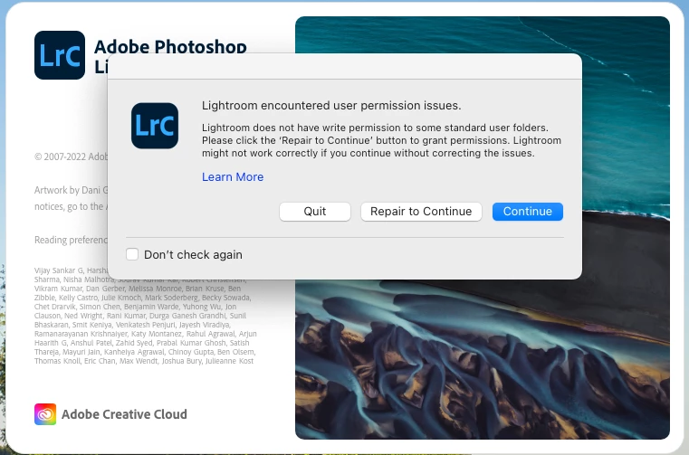 I tried also resetting Lightroom preferences, but got that second screenshot.