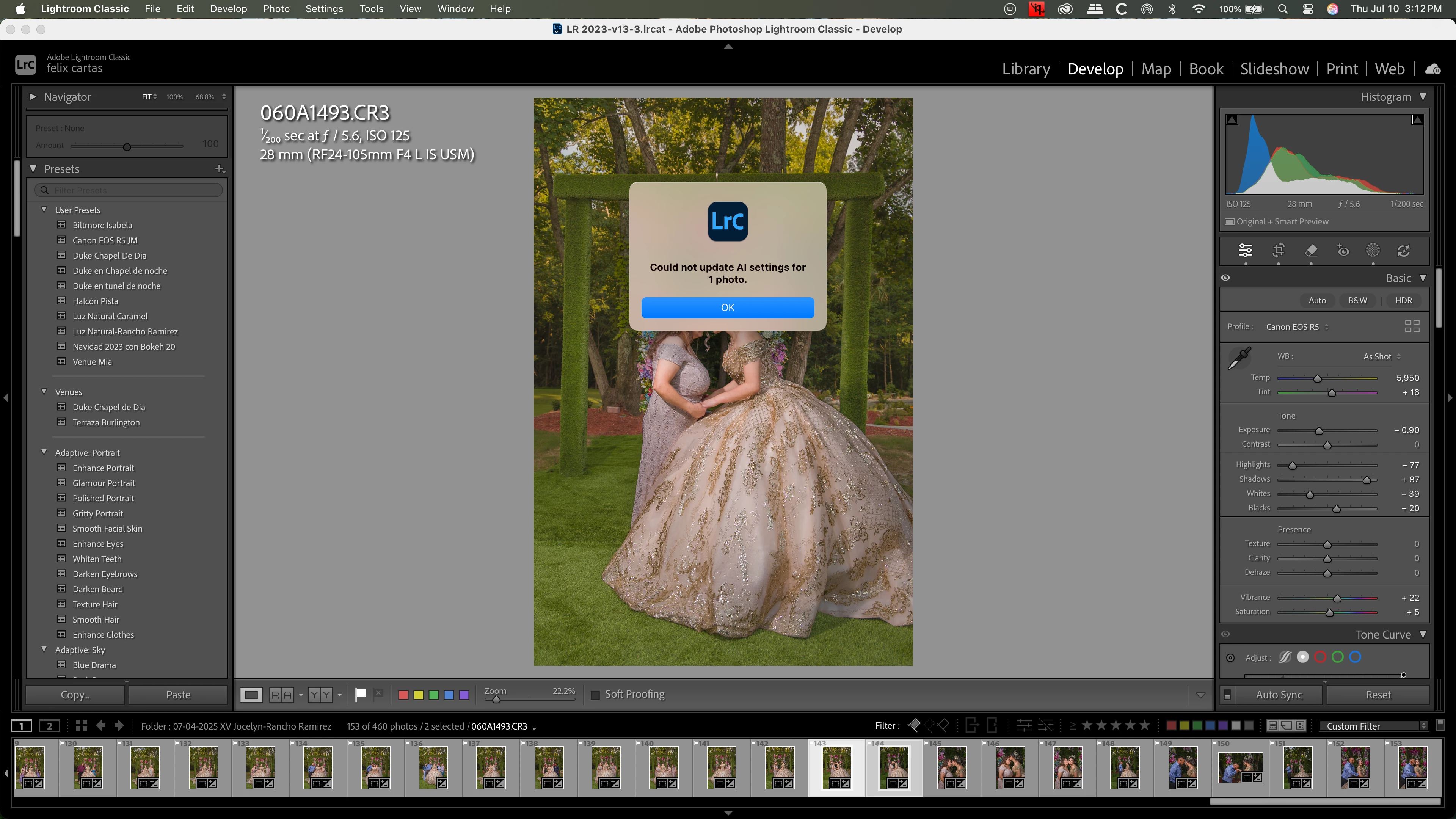 Thanks for reaching out. Could you share a few more details about what’s happening? Which version of Lightroom Classic are you using? Is this issue only showing up with one specific photo, or does it happen with others too? Also, which AI masks are you trying to copy?