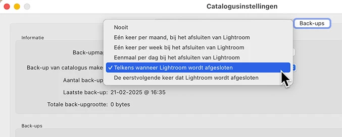 lightroom classic makes no updates of my catalogue, no matter what setting I choose in "bewerken/catalogusinstellingen/back-ups" (Dutch version)