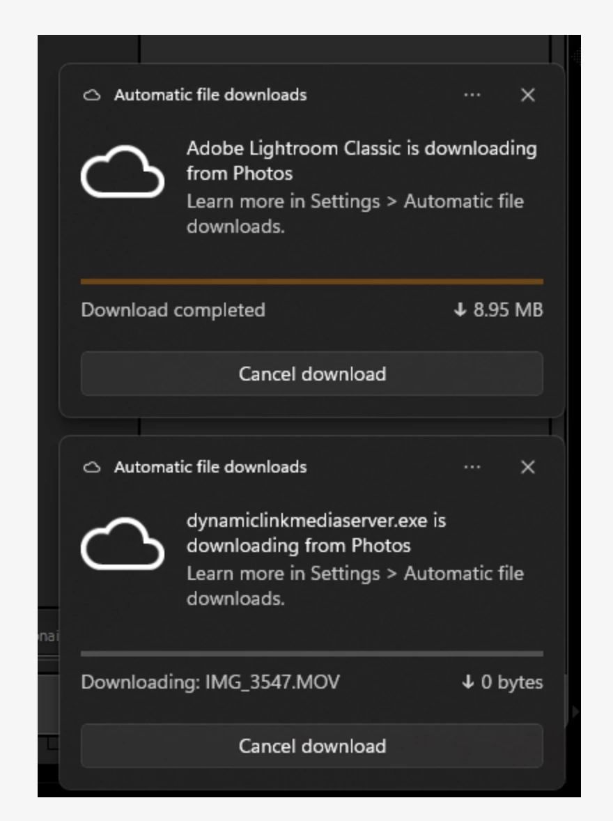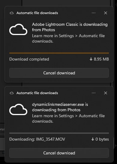 I have 60,000 photos in a folder (downloaded from iCloud) that is being added to Lightroom Classic. Now it has been 'downloading' for two days. I can understand parsing the folder, but what is it downloading?