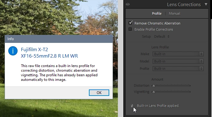Hi, I’m using the latest desktop version of Lightroom. My camera, the Fujifilm X-T2, is supported in Camera Raw. However, when I go to Lens Corrections → Enable Profile Corrections and select Fujifilm, I don’t see the option for the Fuji X-T2. Why isn’t this camera available in the list, and how can I apply the correct lens profile?