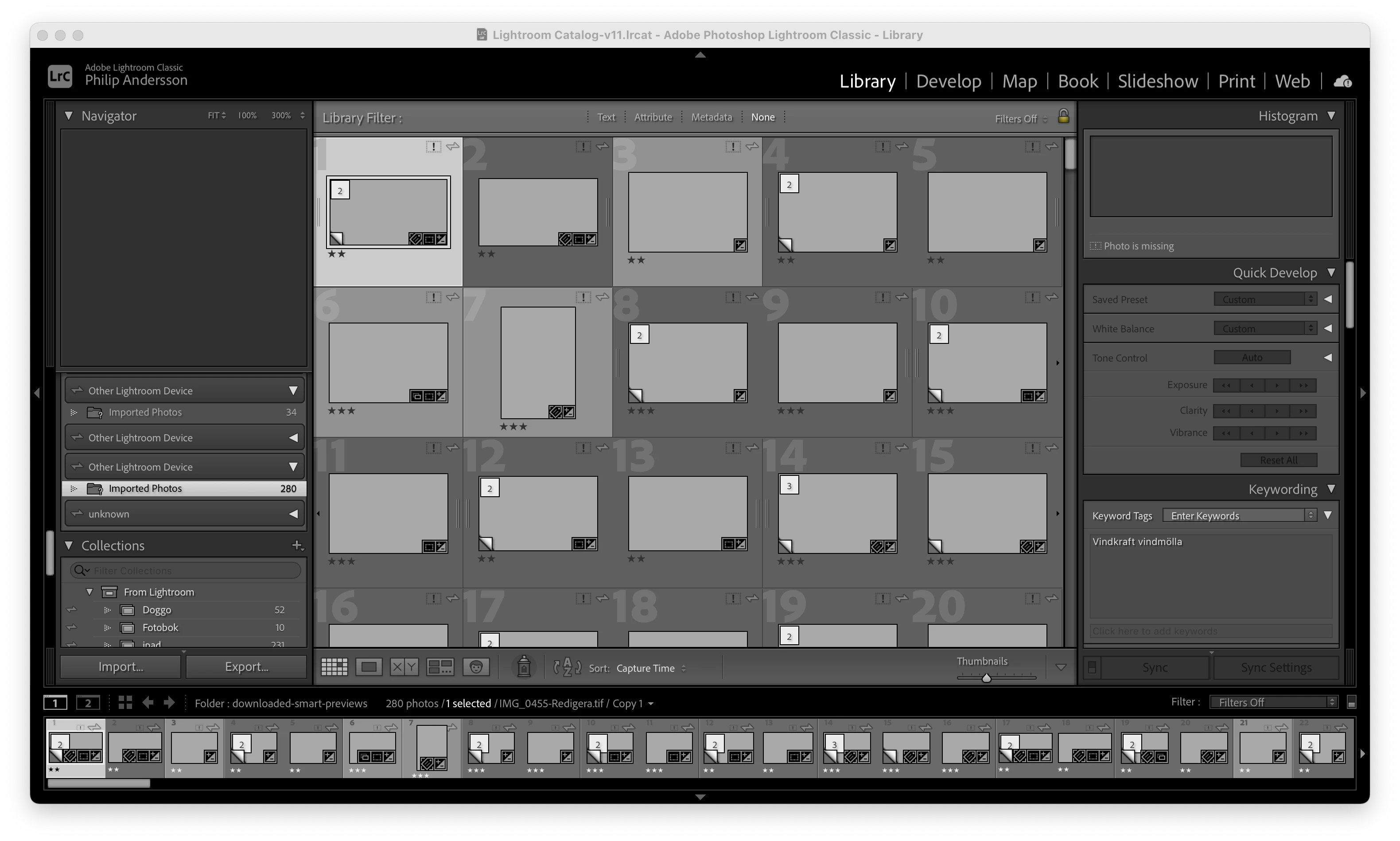 When Apple released their M1 Max I bought one. But this time I did not want to start a new catalog so I just copied the one I used on my previous MBP. But now my collection do not work anymore. I just get “XXX.ARW” could not be used because the original file could not be found. Would you like to locate it? Previous location: /Users/XXX/Pictures/Lightroom/Mobile Downloads.lrdata/downloaded-smart-previews/XXX.ARW