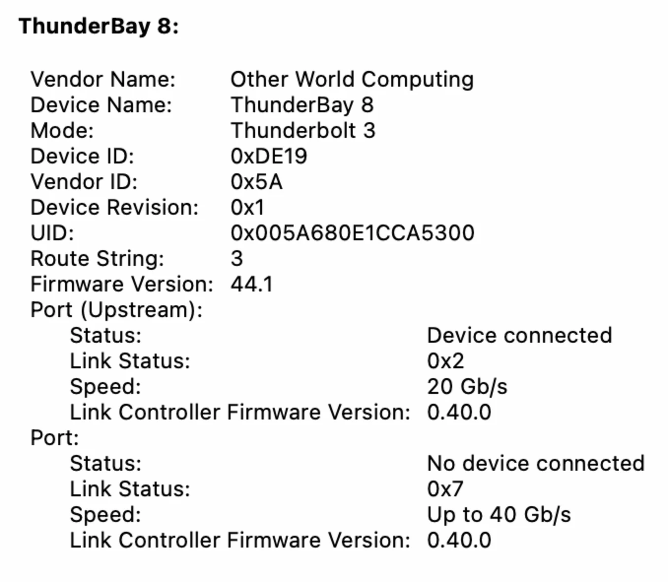 Lightroom data is stored on a OWC RAID 5, model ThunderBay 8, connected with Thunderbolt/USB4