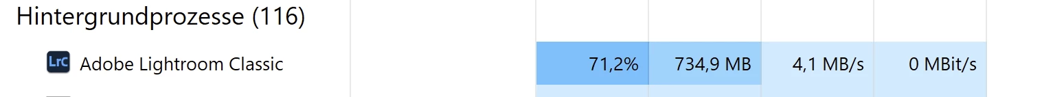 Ich habe Windows 11 (22H2 Build 22621.1485) und Adobe Lightroom 12.2.1 mit einer Nvidia GeForce GTX 1650 (Version 527.37). Seit heute startet mein Lightroom Classic nicht mehr. Vielmehr im Taskmanager ist es zu sehen, aber es erscheint kein Fenster mit Lightroom.