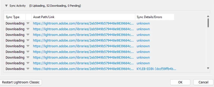 Lightroom Classic Sync Error