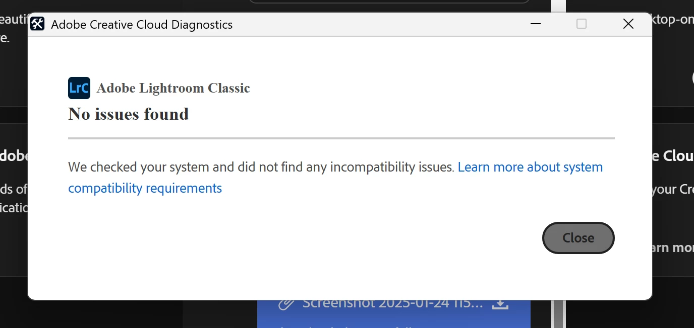 Hi everyone, I am feeling hopeless about an issue with Lightroom Classic. My computer did an update to the Windows 11 Version 24H2 on Thursday night. When I tried to launch my Classic app the next morning, it would not open. An error box stating "Error report for "Adobe Lightroom Classic" (I will attach a photo of it to this thread). When clicking further to diagnose the issue, it comes up with a box stating "No Issues Found", But still will not open the app. I have already contacted Adobe tech as well as Microsoft tech... both have spent hours looking into the issue and cannot figure out why the app will not open. All of my other Adobe apps open with no issues at all, it is just Lightroom Classic that will not open up. I am getting beyond frutrated that nothing has been found to fix this issue yet. I've never ran into this problem in the almost 10 years I've used this app. I hope someone can help me, please!