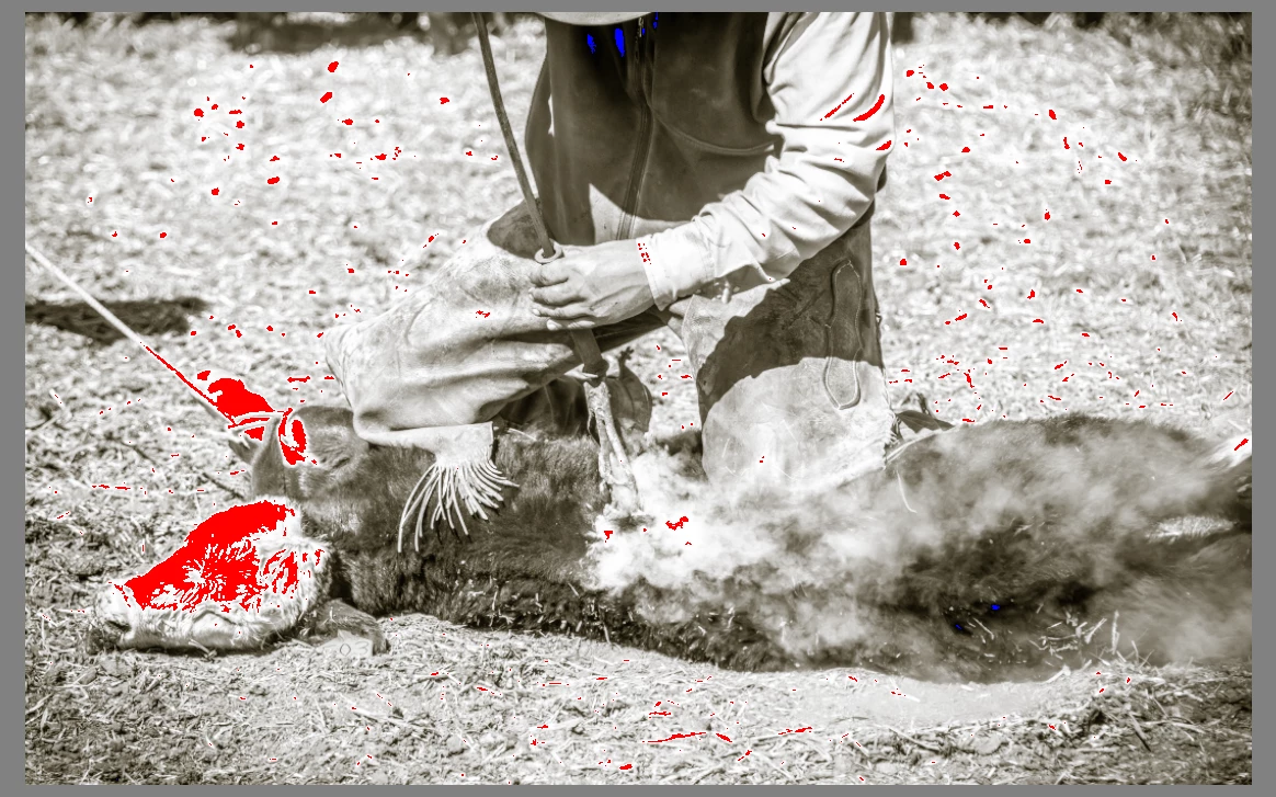 My example is a photo that I applied a sepia edit to and it shows these red and green spots. It looks normal in Photoshop. The 2nd photo is after it has been exported to Photoshop.
