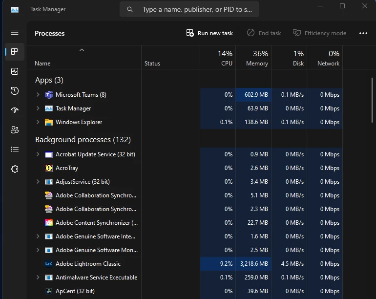 I was using LR Classic this morning, imported some photos, sis some edits. I closed LR to do some other tasks. When I tried to open it again, seemed like nothing was happening. Looking at task manager, I could see there was an Adobe Lightroom Classic app running in the background. No icon in the taskbar, no visible window, but the lock files were present in my catalog folder.