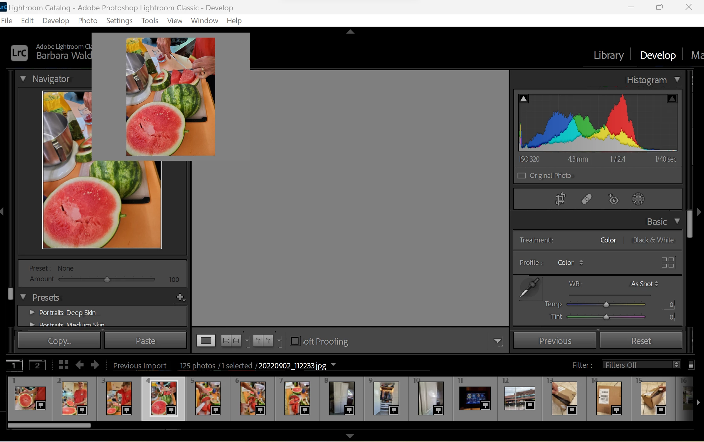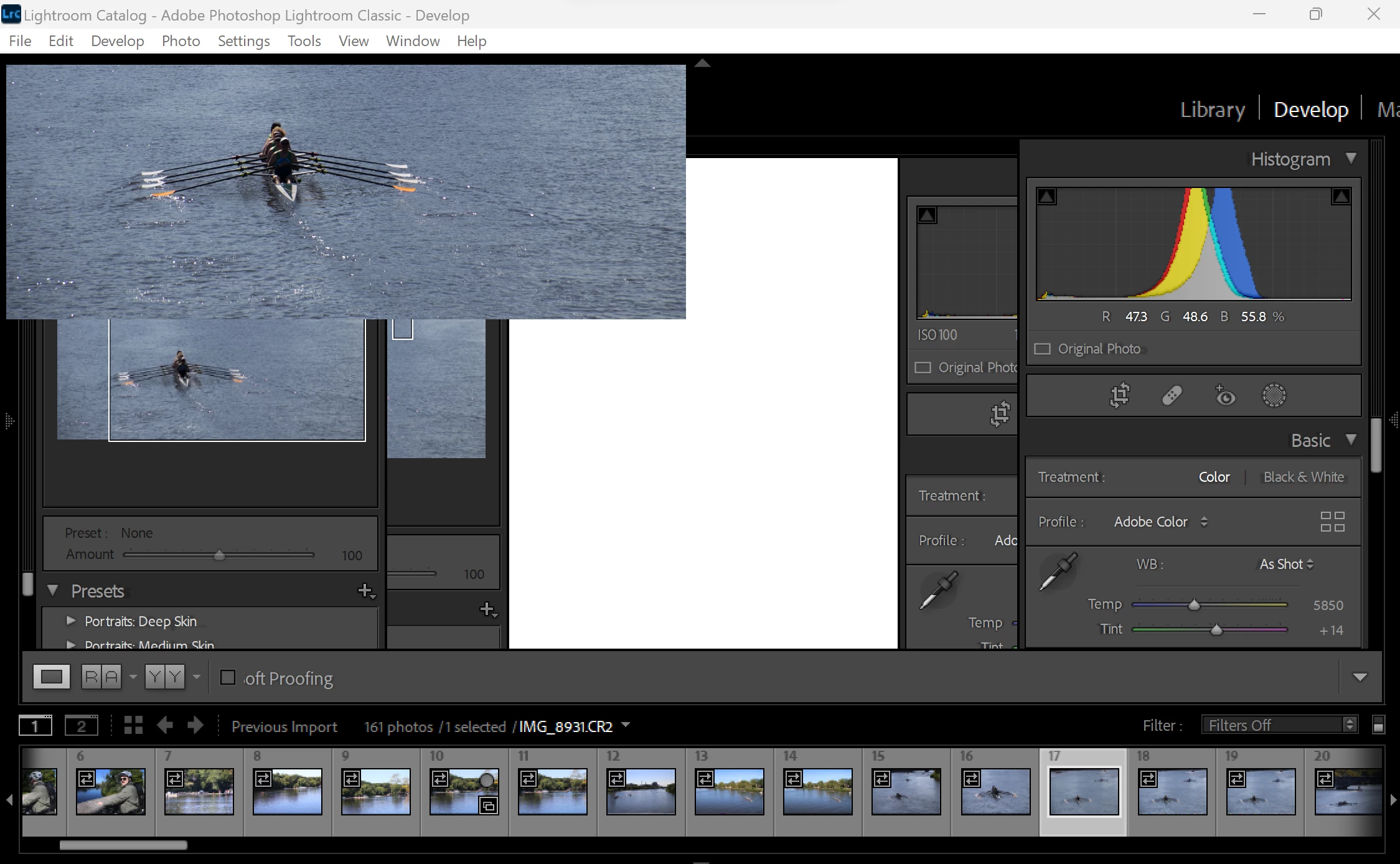 Lightroom Develop display overlaid with extra windows on laptop screen