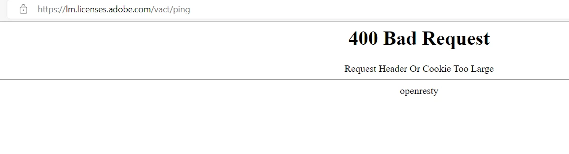 When I ping the other activate server, used by the up-to-date versions, and I guess also by my lightroom, https://lm.licenses.adobe.com/vact/ping, I get back "400 Bad request Request Header Or Cookie Too Large"... So obvisously I cannot connect -- and I have zero idea why not!!