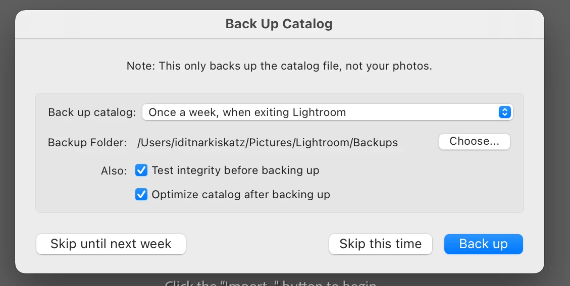 Once I click reluanch I'm asked if I want to backup the catalog, but since I don't have one, I just click "skip this time".