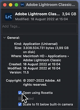 Lightroom doesn't relaunch into Rosetta mode on MacBook M1