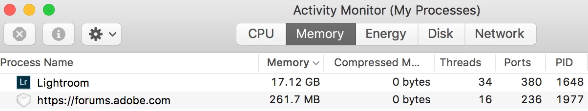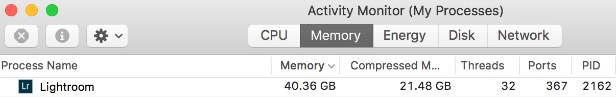 Lightroom eats up all memory