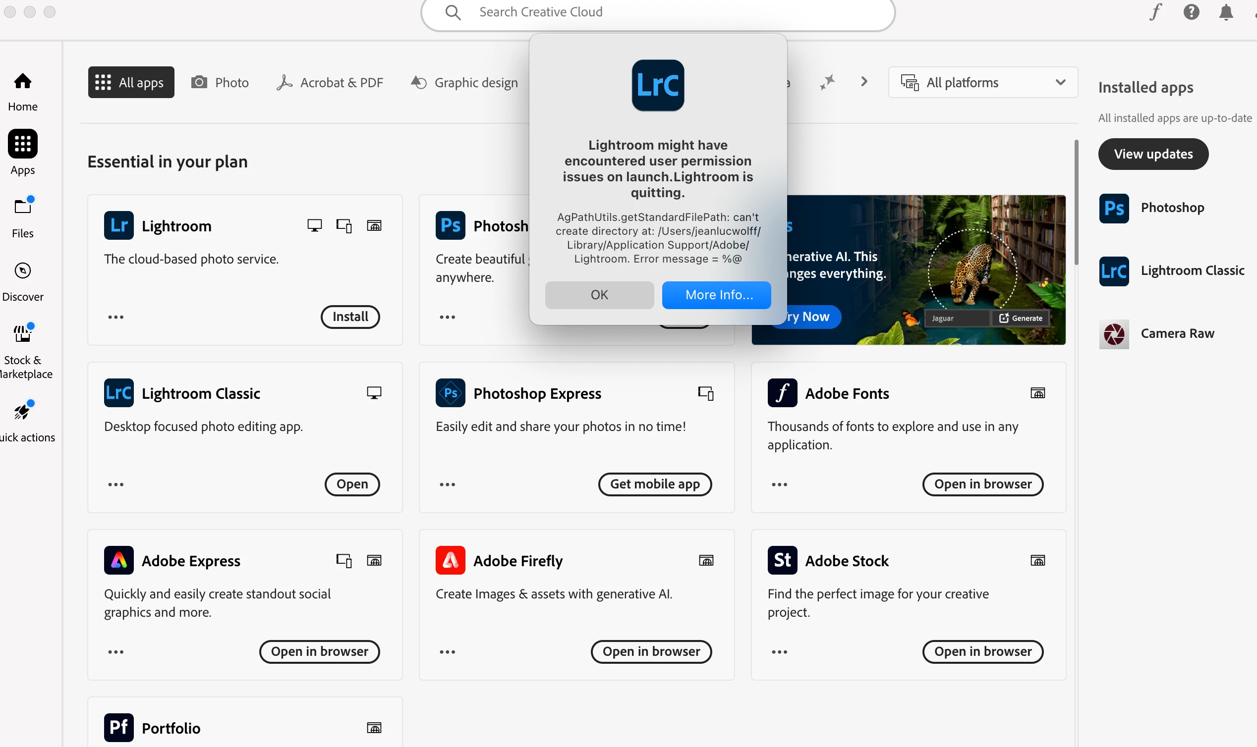 I have a macbookAir M3 Sonoma 14.4.1. I have tried everything including the "Adobe Cleaner tool". I have given accessibility to the software In the "safety and security", added permissions to me in the finder to "read and write" and included all the files in the little "...". Nothing works. Any Idea?