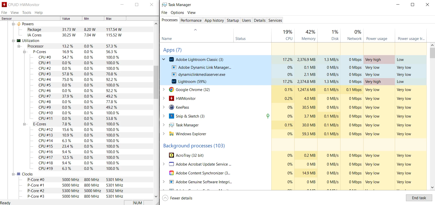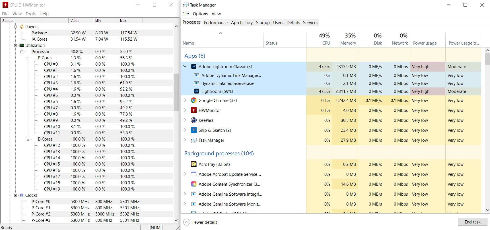 - Minimize Lightroom Classic and wait for the thread scheduler to assign the threads to the Efficiency cores.