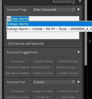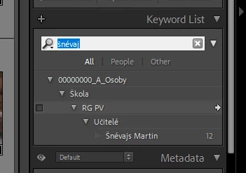 Your screenshot shows you have two keywords named "Snévajs Martin", one at the top level and one with ancestors "Ucitelé < RG PV < Skola < 00000000_A_Osoby":