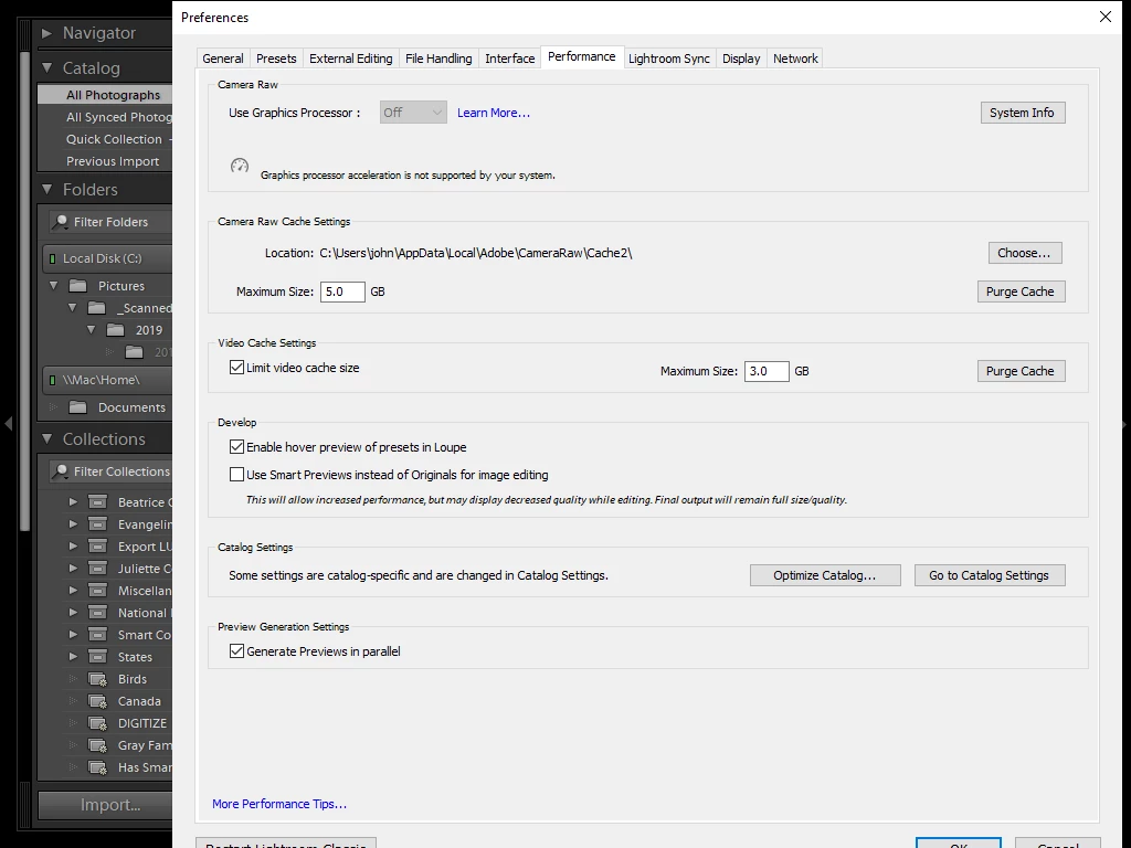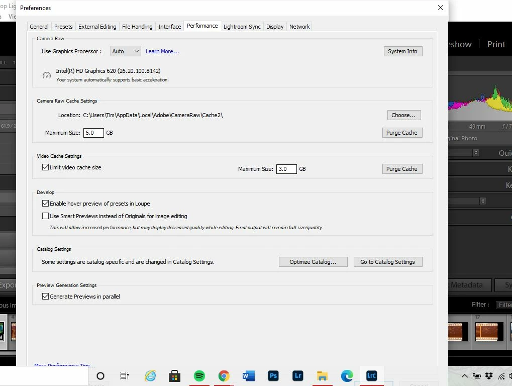 Lightroom Preferences Tab to big to click "OK"
